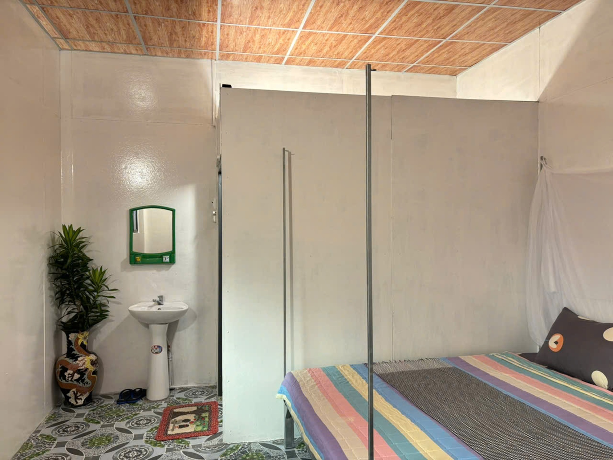 Homestay Family tiny garden: The room has air conditioning and a private bathroom.