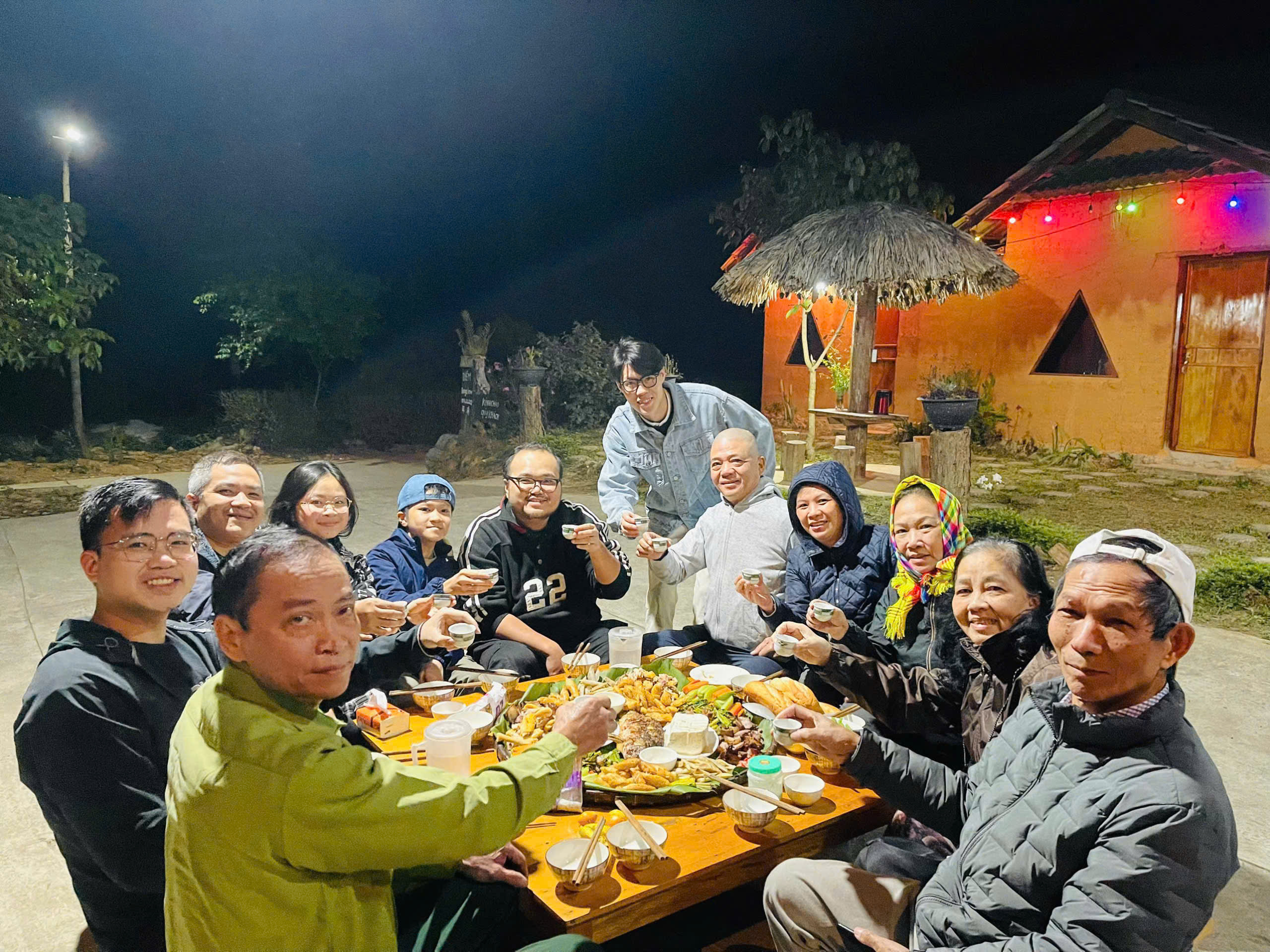 19h00: Guests have dinner at the homestay. Afterwards, you gather around the fireplace, roast corn and sweet potatoes, and soak their feet in herbal water provided by the Dao people, relieving fatigue after a long travel day.