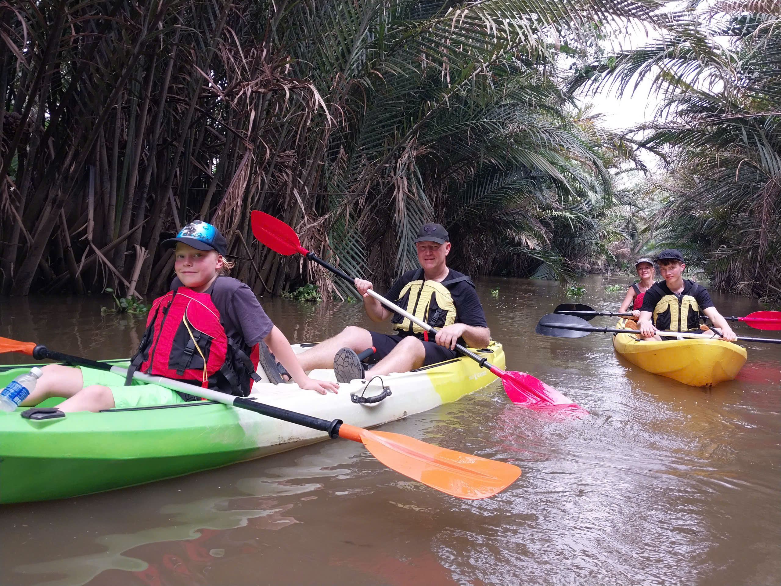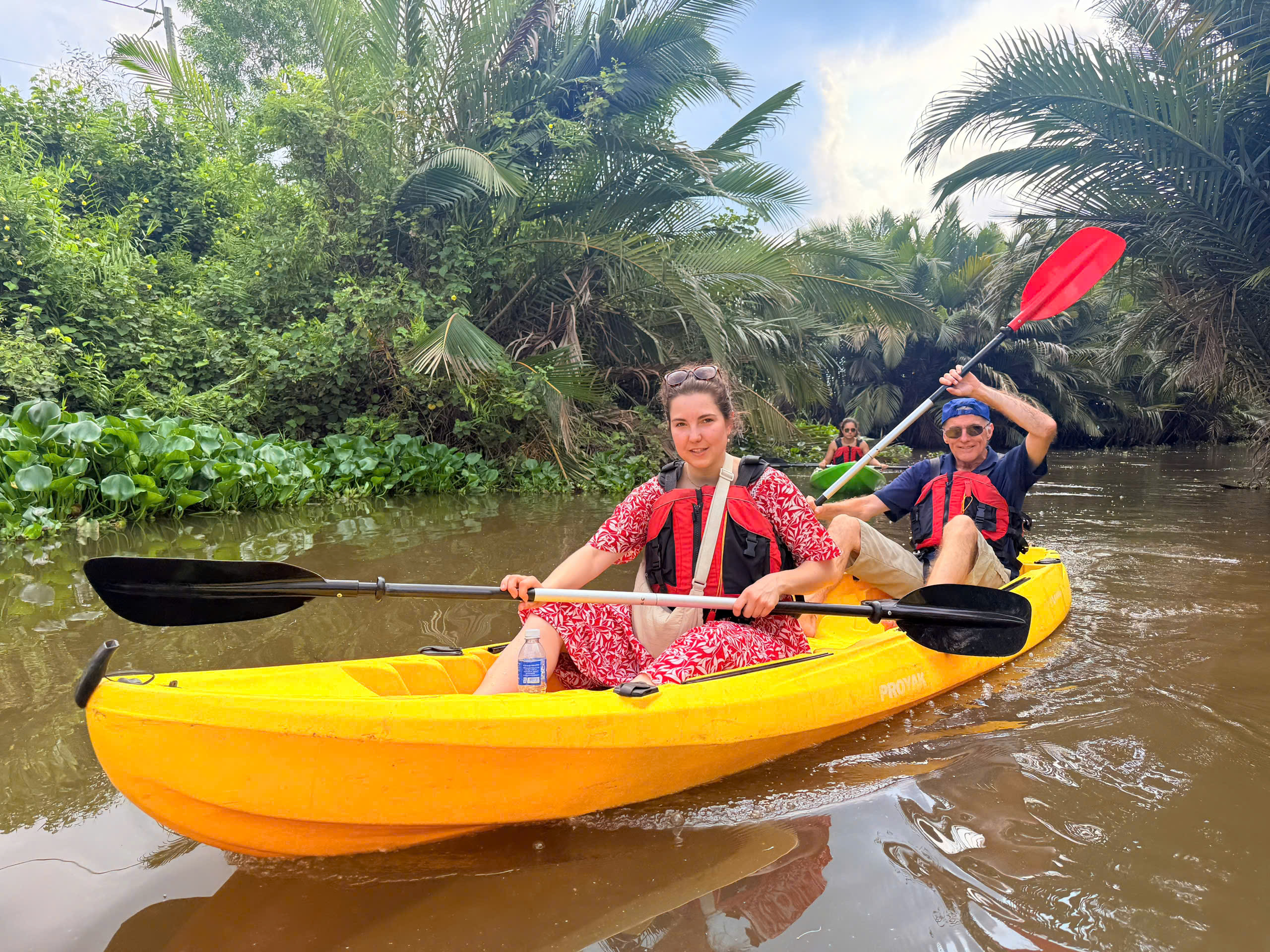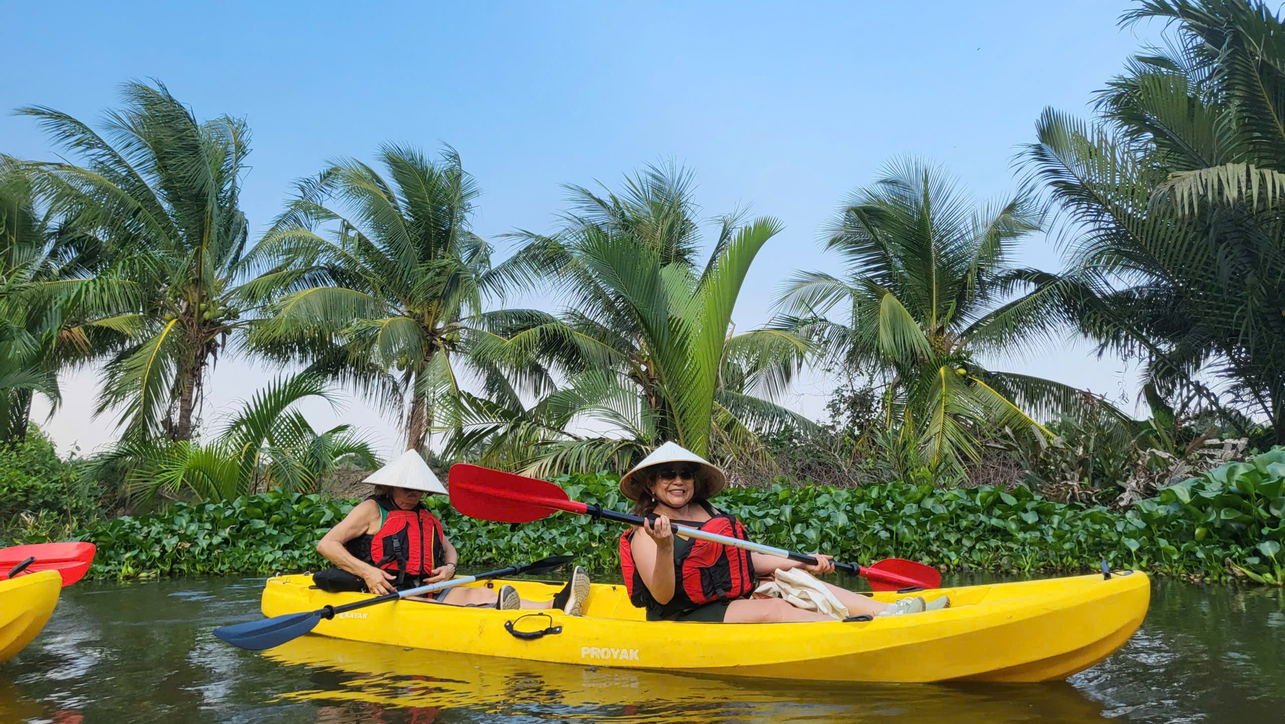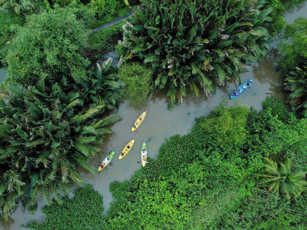 Family Tiny Garden Homestay offers an unforgettable escape surrounded by lush nature and authentic local life. Wake up to fresh air, glide through serene canals by kayak, cycle along quiet countryside paths, and take part in a hands-on rice planting experience with local farmers. Here, every moment is designed to help you relax, reconnect, and create meaningful memories in the heart of the Mekong Delta.